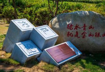 聊城二干渠城市生態公園的石材景觀雕塑,包含題字石碑與浮雕墻,展現出豐富的文化理念。