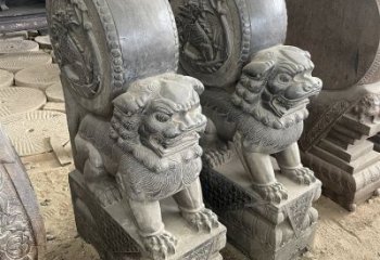 雕刻精美的大理石門口抱鼓雕塑