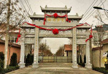 仿古建筑三門牌坊,大理石雕刻裝飾