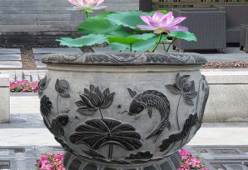 中式風(fēng)格漢白玉鯉魚(yú)浮雕水缸