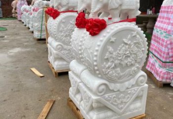 大理石石雕抱鼓是一種精致的石雕藝術品,它以大理石為原料,經過精湛的工藝制作而成,精美的藝術品,可以放置在家庭的園林庭院門口,為環境添加一份美麗與溫馨。